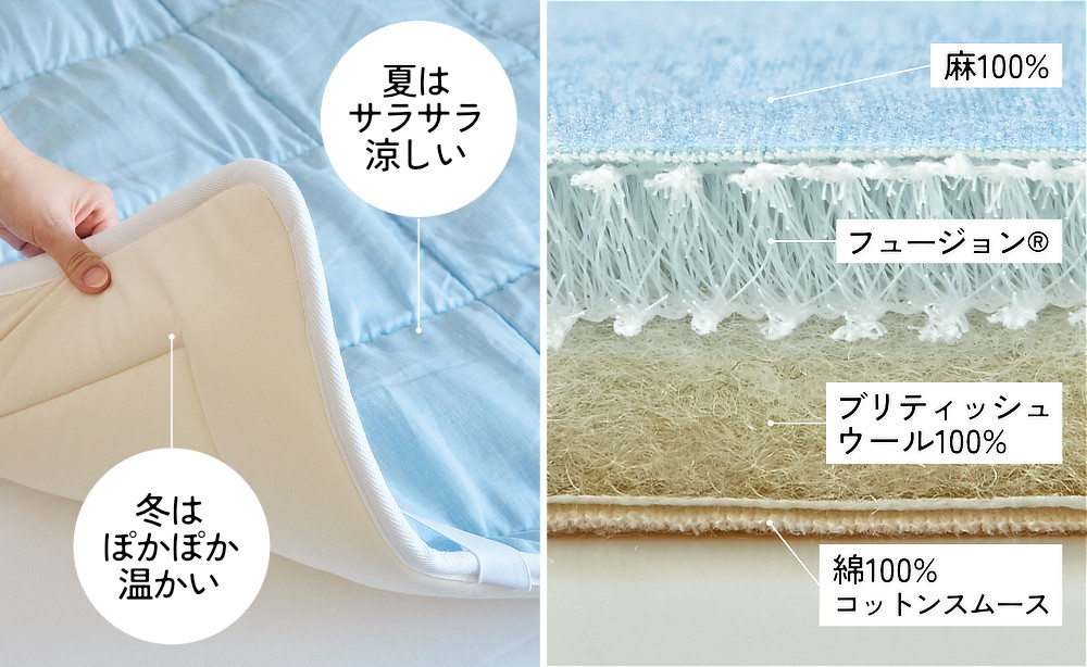 夏はサラサラ涼しく&冬ぽかぽか暖かい、敷くだけ「体圧分散オールシーズン敷きパッド」|すばらしきしんぐ™