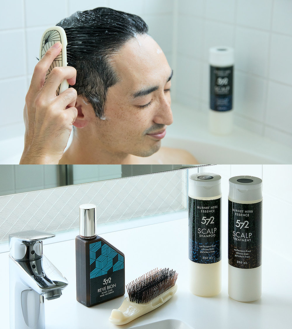 《スカルプブラシ》コシの強い572本のピンが、皮脂汚れをかき出す|572