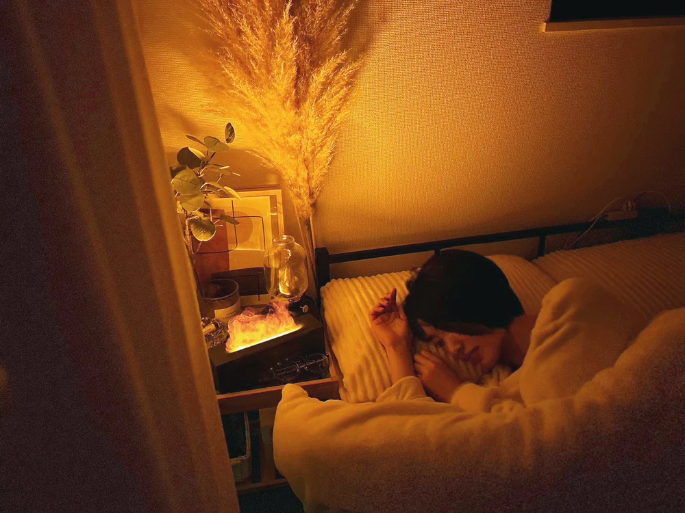 炎の「1/fゆらぎ」のリラックス効果に着目した「視覚」、睡眠環境をデザインする「光」と「香」によって睡眠環境にアプローチ。心地よい睡眠環境を見据えた新感覚の「アロマディフューザー」です。