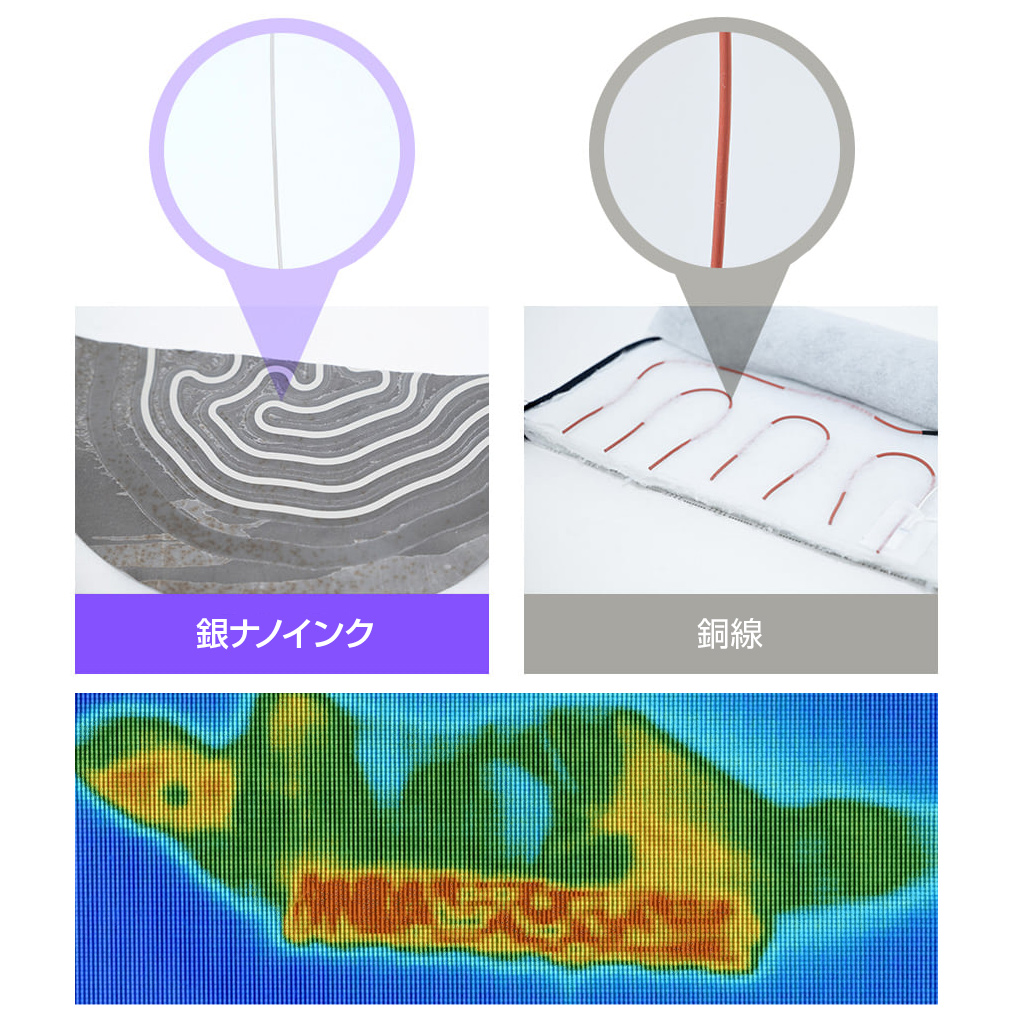 開発に10年以上もかけた世界初の特許技術、シート全面に印刷した「銀ナノインク」でじんわりと発熱する温熱マット。