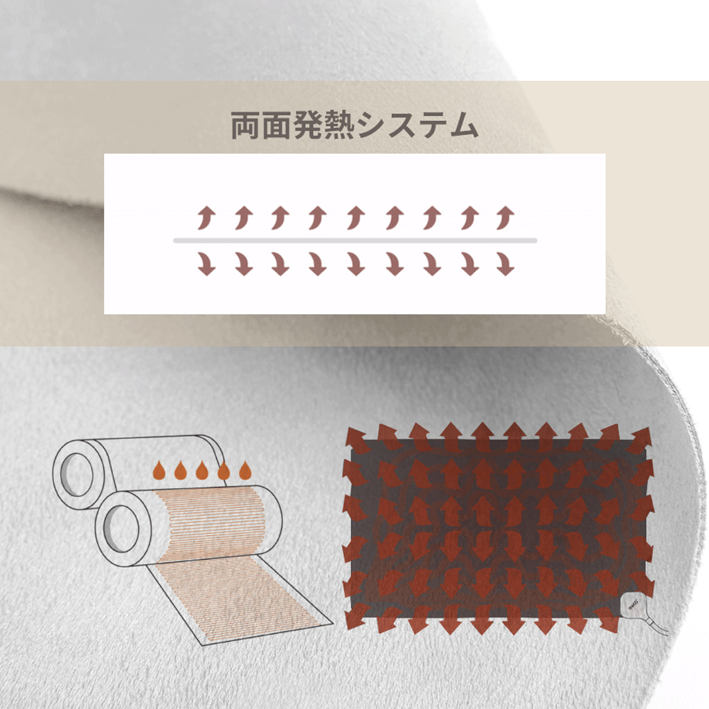 銀ナノインクで発熱するから電磁波も発生せず、家族みんなで使えるやさしい設計です。シート全体に面で発熱するから、加温ムラもありません。