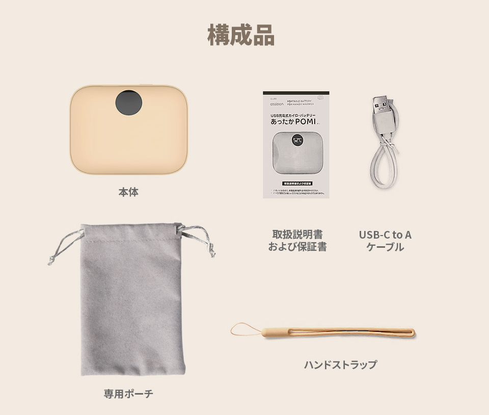 【4,860円→3,980円】USB充電式カイロ&モバイルバッテリー 「あったかPOMI ポケットカイロ 9600mAh」|Coolean