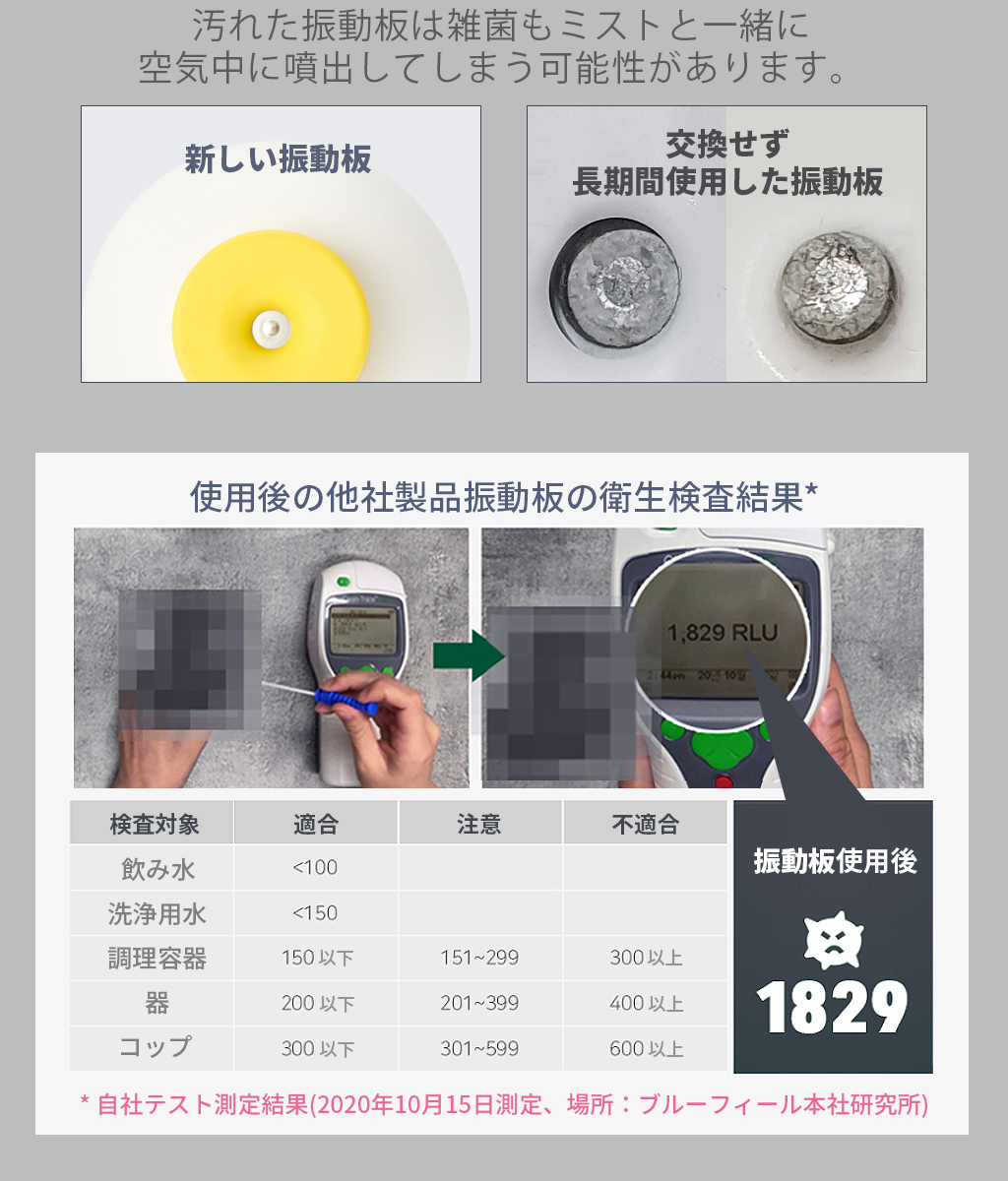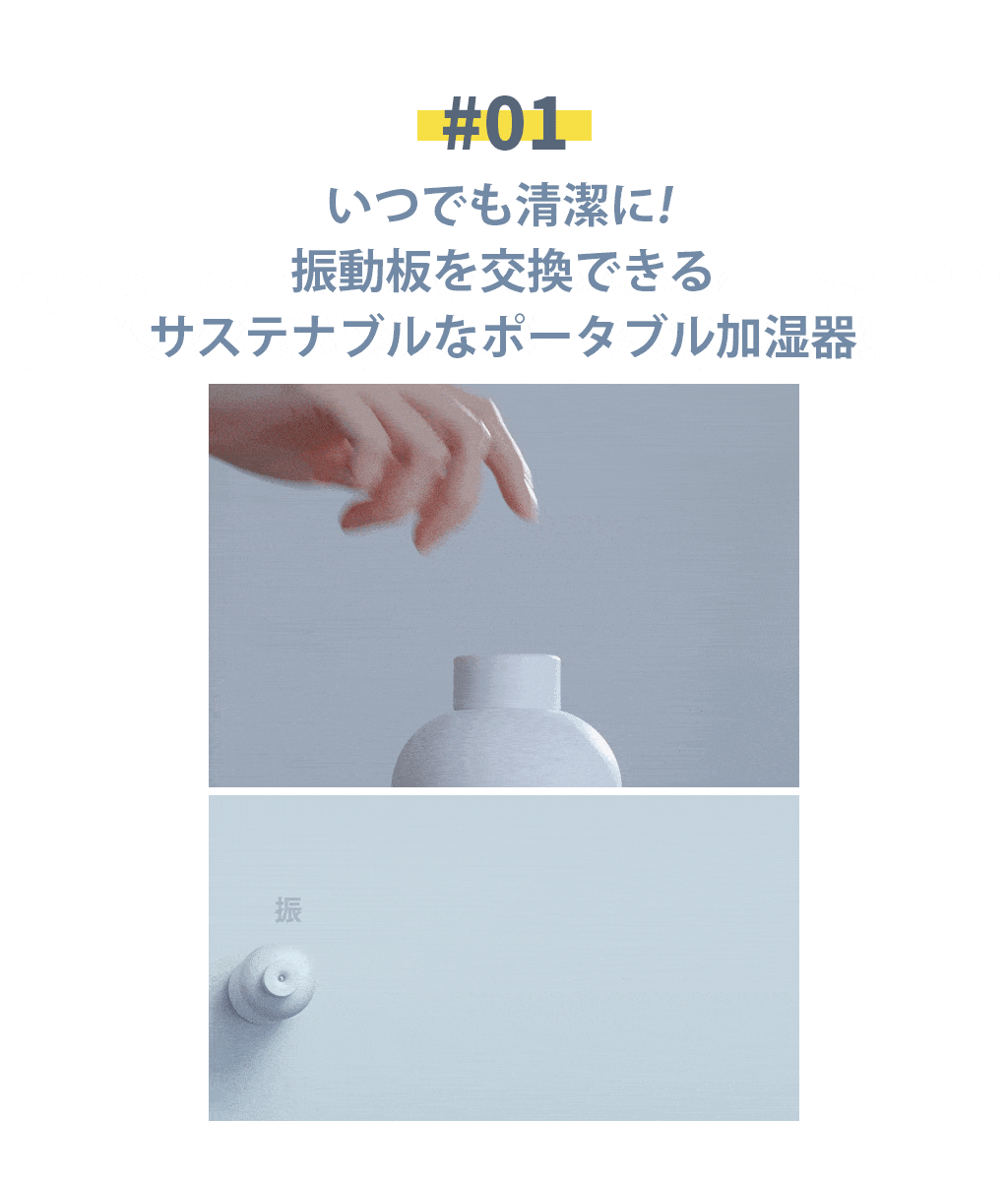 『BLUEFEEL』なら、振動板をボトルの蓋のように回すだけで簡単に取替可能。新しい振動板パーツに交換することで、健康で安全な加湿器生活を送ることができます。