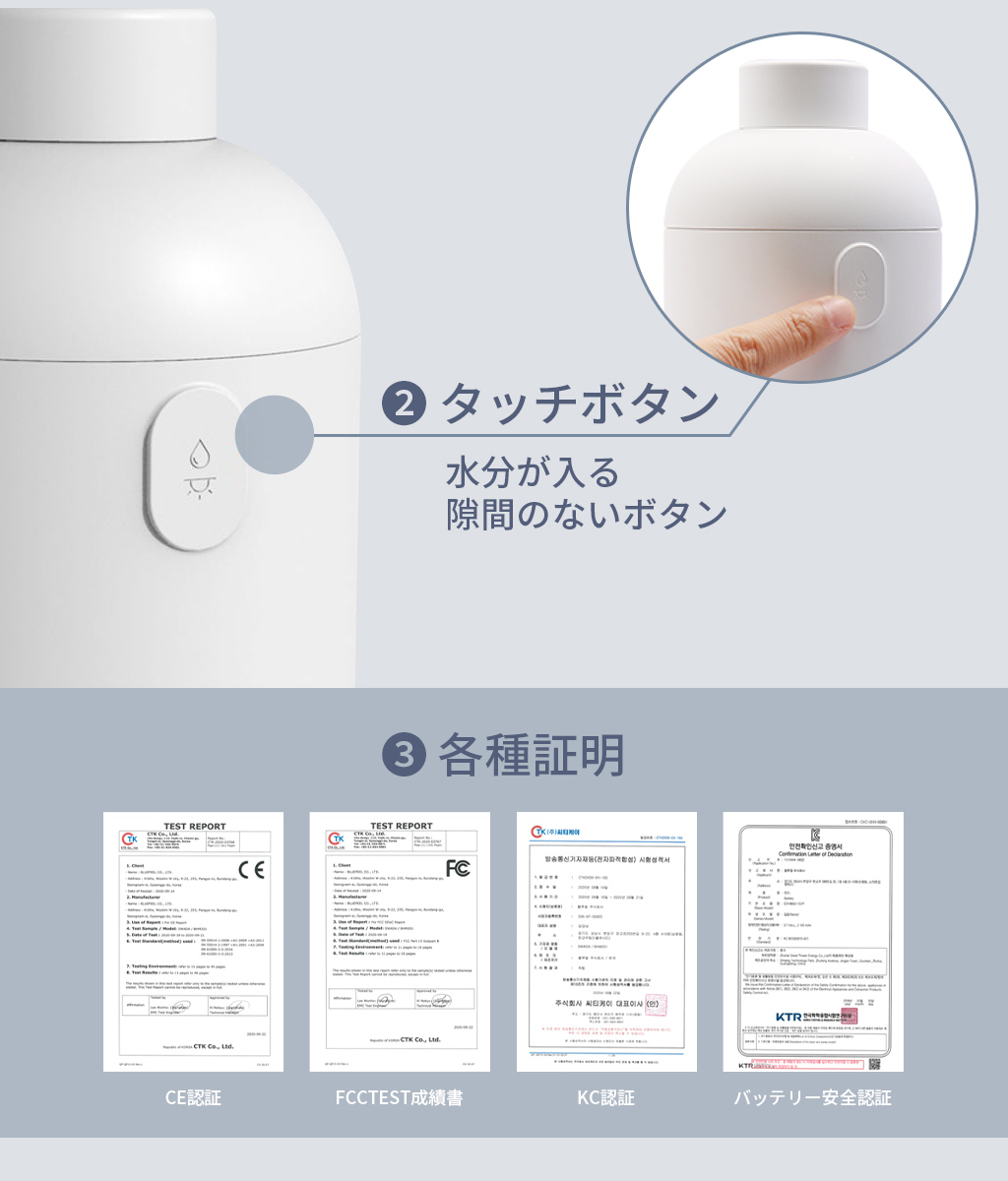 タッチボタンはボタンと本体の隙間がなく、水分がボタンの間に入ることによる故障を防止。直感的なユーザビリティとシンプルなデザインにしたことで製品の完成度を高めています。