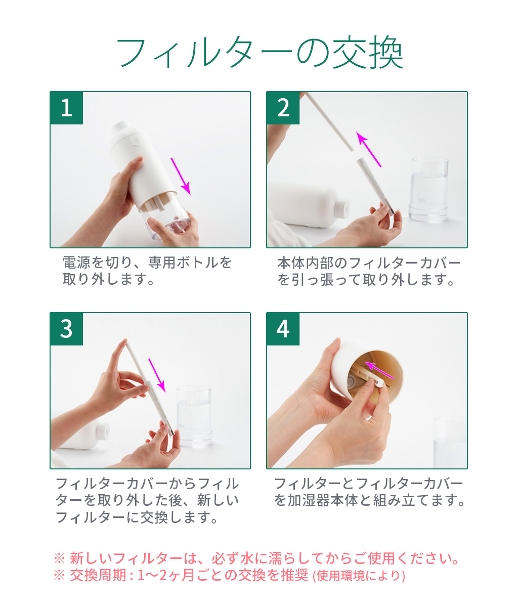 ※ 新しいフィルターは、必ず水に濡らしてからご使用ください。