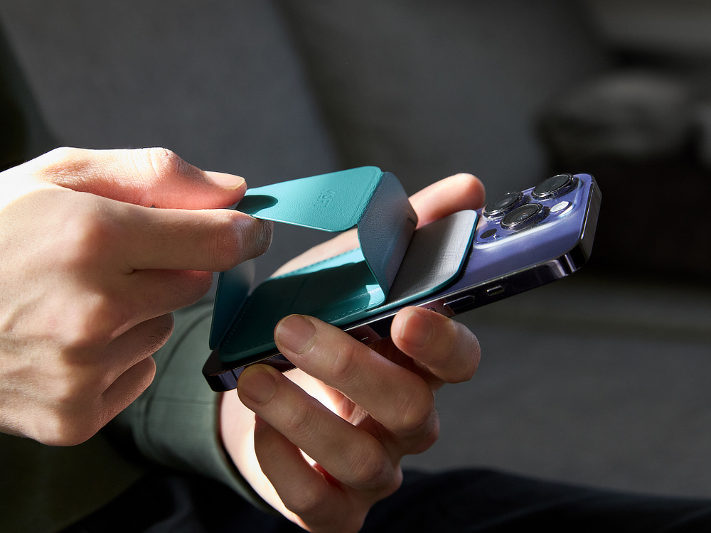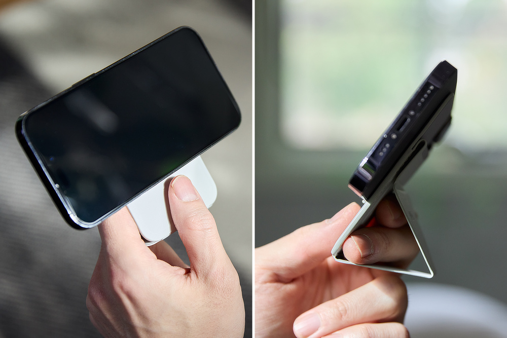 《七変化スマホスタンド》収納時は薄〜いのに、片手でスイスイ高さ調整できちゃう「カード型スタンド(MagSafe対応)」