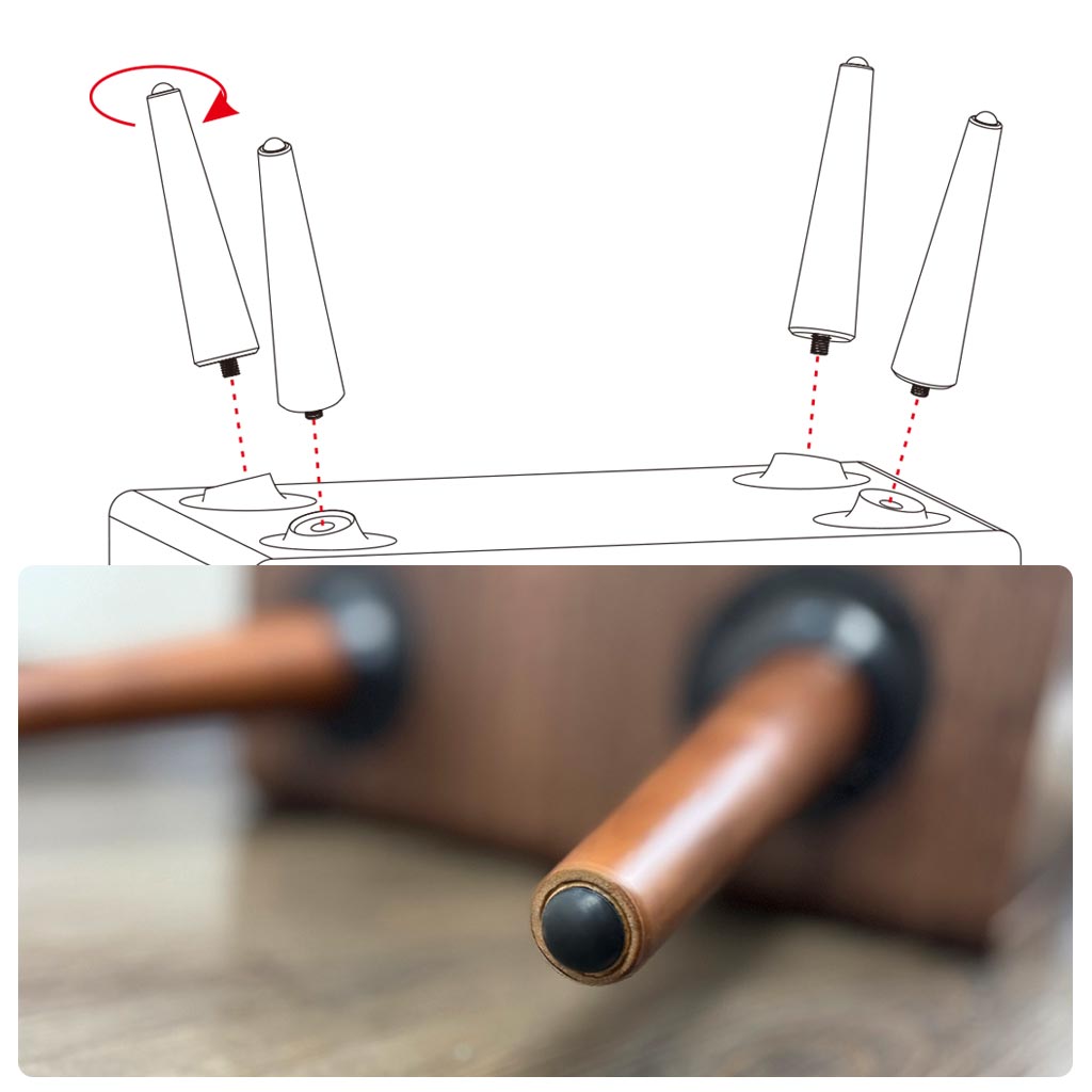 組み立ても簡単。脚をねじ込むだけのシンプルな構造で、女性や初心者でも手軽に組み立て可能です。