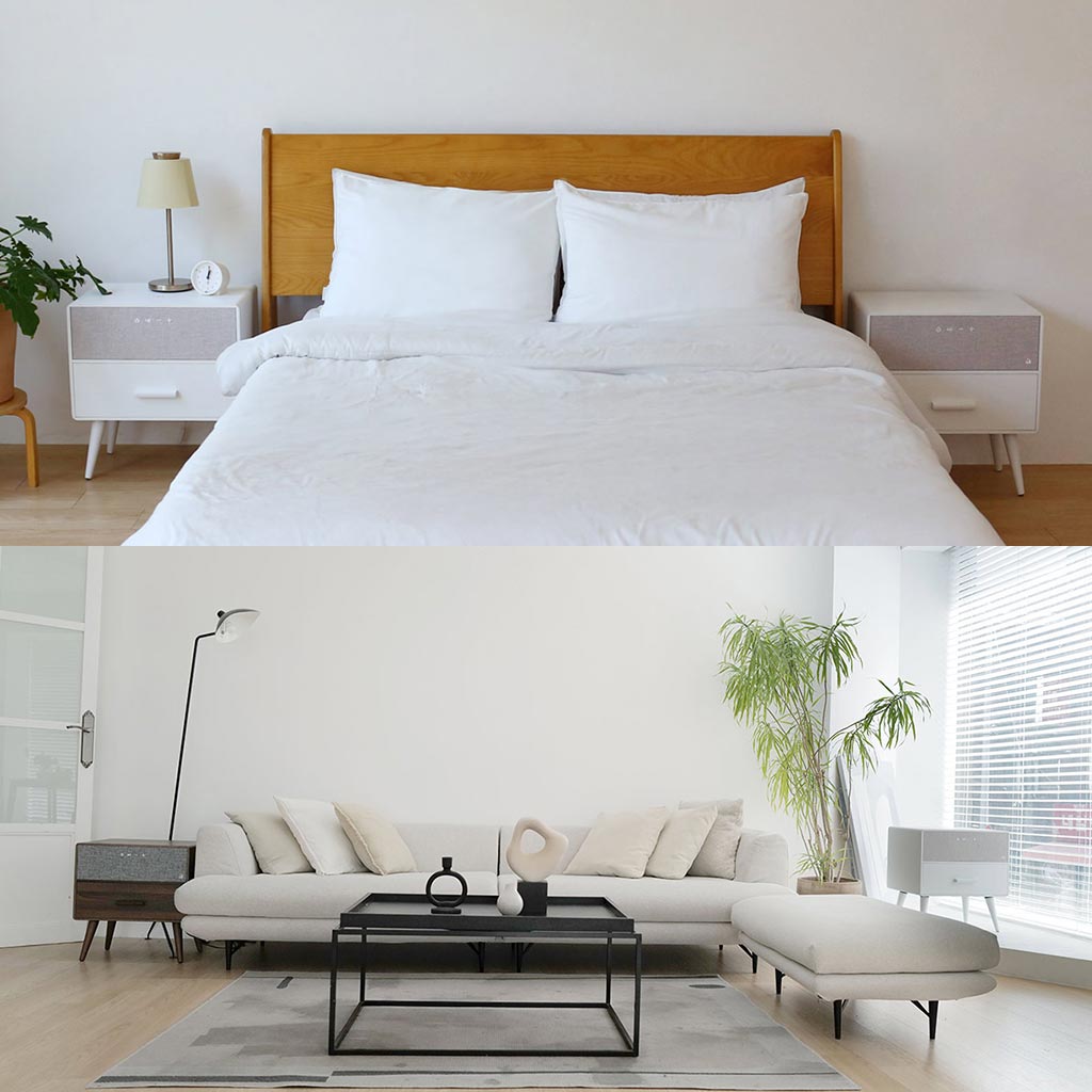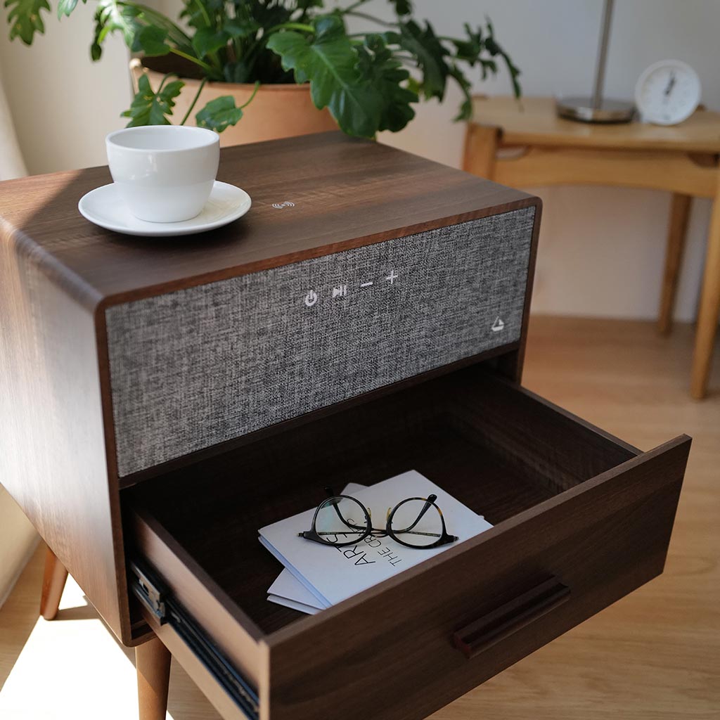 引き出し収納、ワイヤレス/USB充電機能など、暮らしを快適にする機能を1台に凝縮。どんなインテリアにも自然に馴染み、限られたスペースでも家具を増やすことなく、くつろぎの時間に音楽と便利さをプラスします。