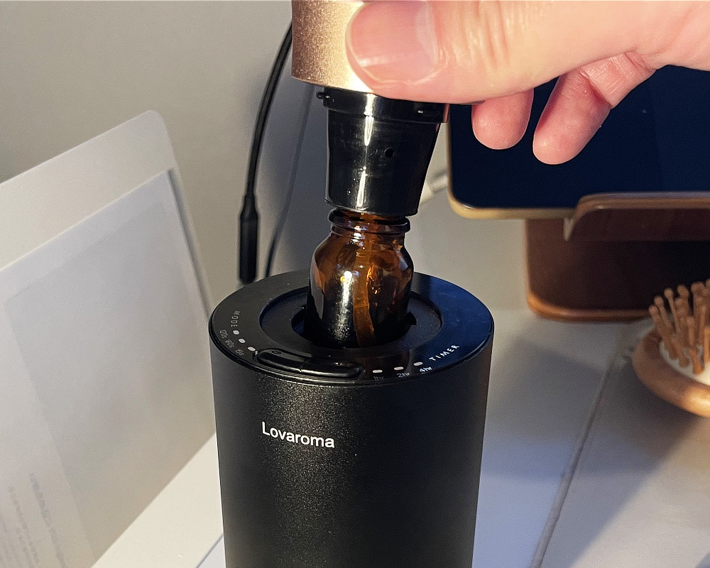 そんなときは、Lovaromaを スイッチON!中にセットするのは、Lovaroma純正オイルの「おやすみ空間」。