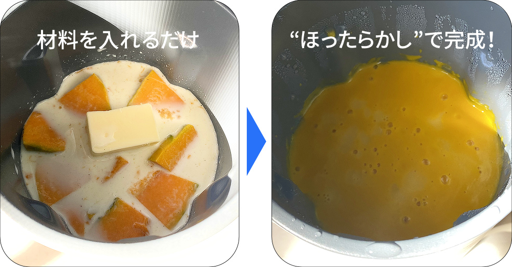 できあがりはレストラン級。舌触りなめらかで、かぼちゃの甘みに牛乳とバターのコクが加わり、感動モノのおいしさ。