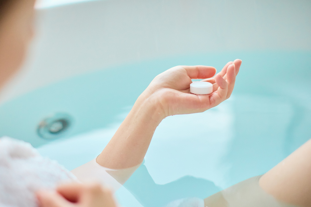 究極の炭酸湯で「温泉旅」気分お風呂に3錠入れるだけで、炭酸ガスから発生した重炭酸イオンが、長時間、溶け込んだままの“重炭酸湯”ができあがり。 -