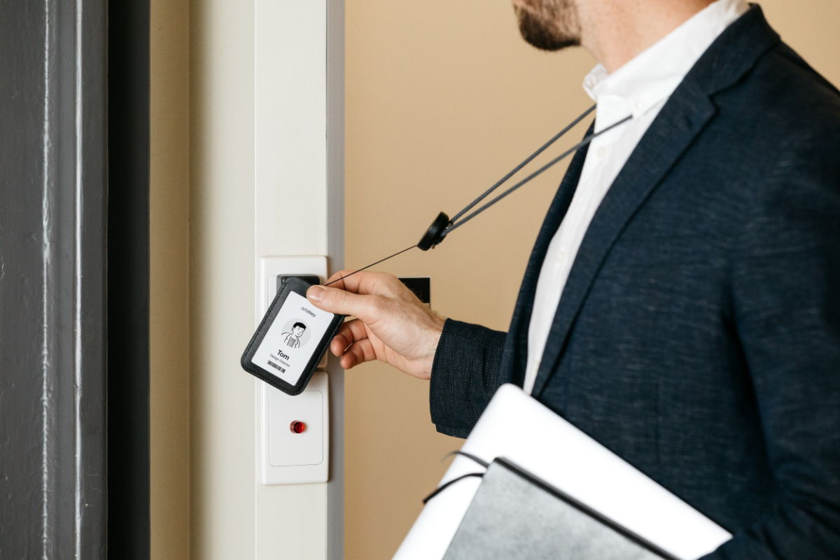 スムーズなタッチは、独自開発したワイヤーリール構造のおかげ。スルッとひき出せて、音もしないから、カードキーを上へ下へ、自在にタッチ。 -